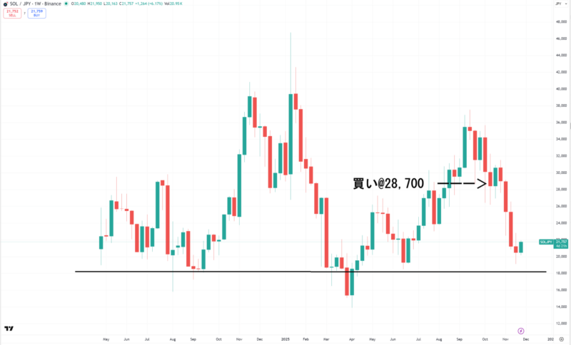 SOLJPY 買い 平均約28,700円 現在値約21,000円